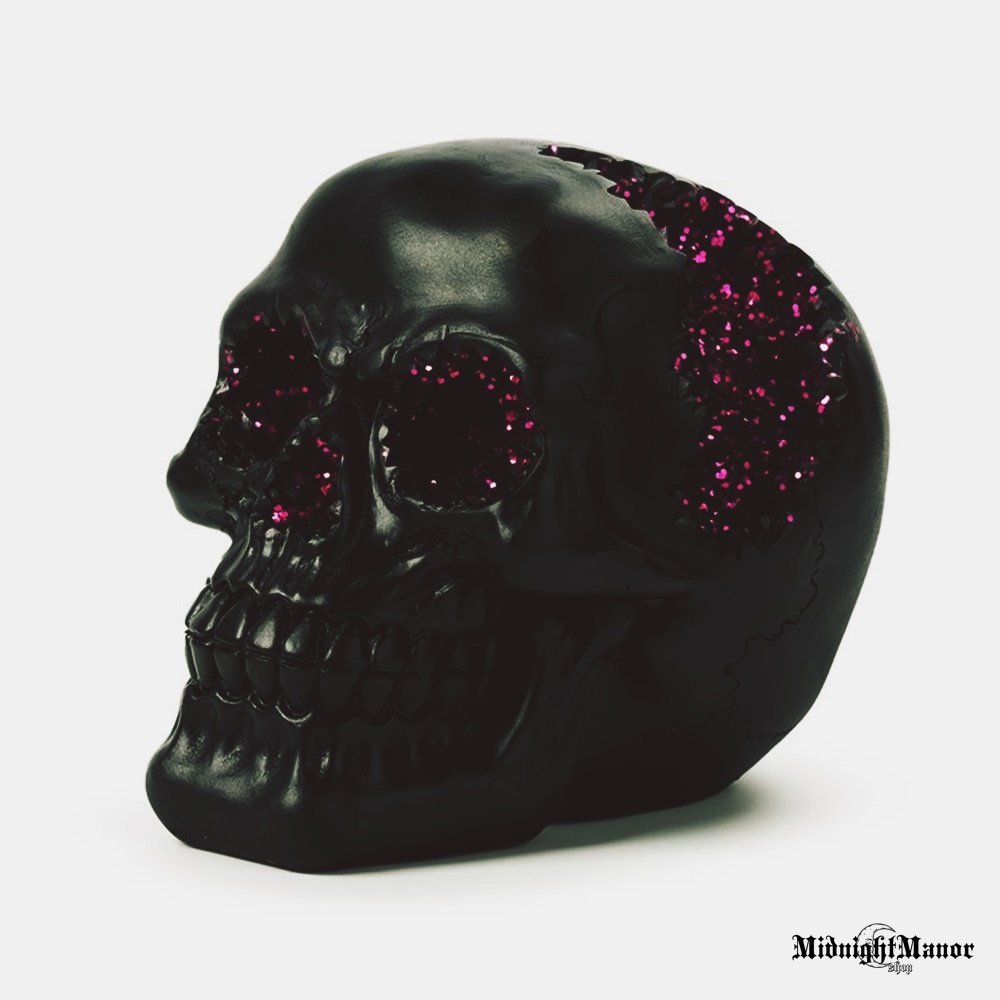 Kristalų Žaizdos Kristalų Akiduobės Juoda Kaukolė Dekorui Iš akmens masės, polirezino. 11x10x15cm. Imituotas kristalų blizgesys