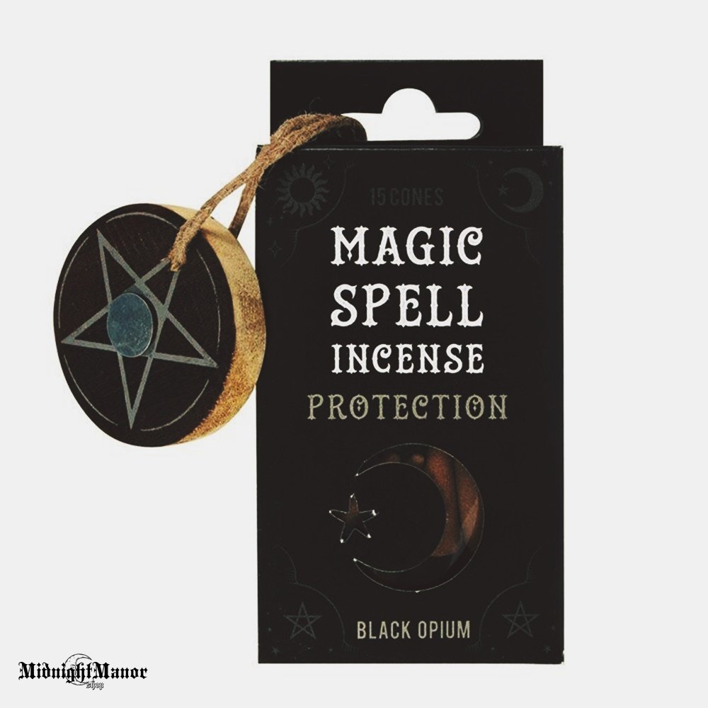 This box of magic spell incense includes 15 green tea scented incense cones and a matching wooden pentagram holder that is perfect for accompanying spells of good fortune. Whether used for spellwork or everyday enjoyment, this fragrance will attract all things lucky. Please practice caution when burning and never leave lit incense unattended.